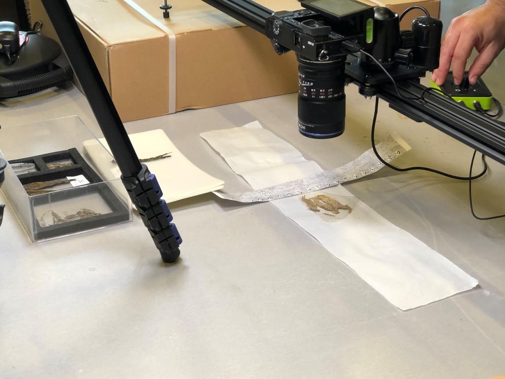 To document this fragile artefact, the team applied two complementary digital methods. Photogrammetry was used to create an accurate high-resolution 3D model, preserving the textile’s geometry, texture, and colour. In parallel, Reflectance Transformation Imaging (RTI) enabled the detailed recording of subtle surface features, such as weave patterns, depressions, and traces of use, which are not easily visible to the naked eye.
